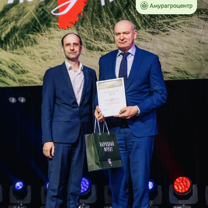 Награда коллективу «Амурагроцентра» была вручена нашему генеральному директору Александру Сарапкину. Мы искренне рады тому, что наша группа компаний получила высокую оценку своей деятельности. Весь наш коллектив вносит существенный вклад в развитие экономики, поддерживает социальные и благотворительные программы. Для нас была огромная честь принять участие в церемонии чествования наших земляков, которые, как и мы, получили высокую оценку своей деятельности.