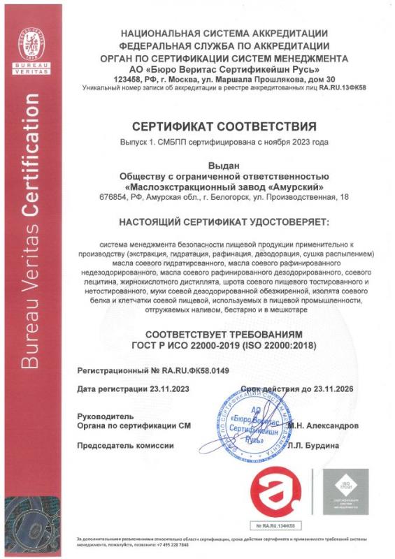 Сертификат соответствия ГОСТ Р ИСО 22000-2019 — это документ, подтверждающий соответствие системы менеджмента безопасности пищевой продукции требованиям стандарта ГОСТ Р ИСО 22000.