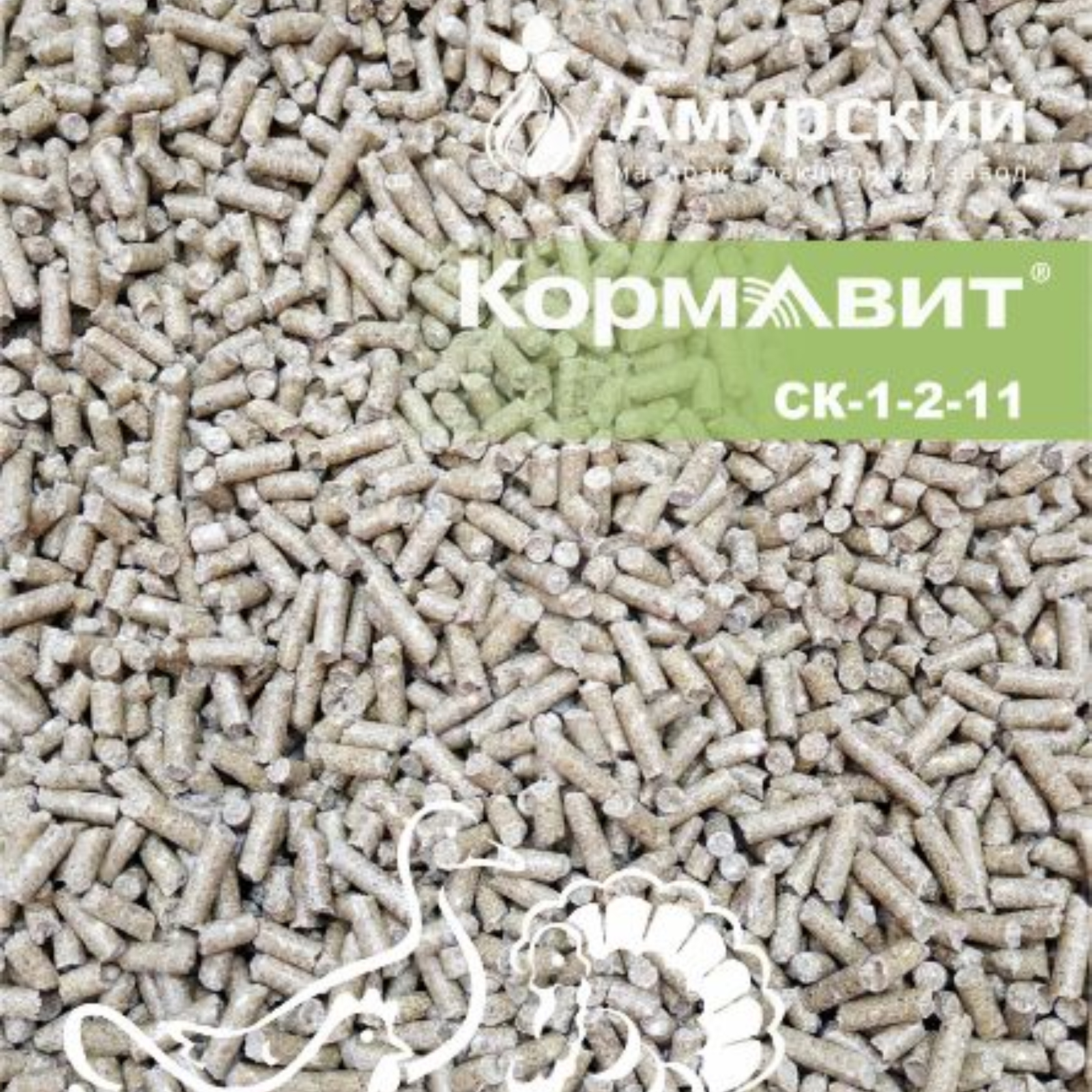 Пшеница, шрот подсолнечный, кукуруза, ячмень, овёс, известняковая мука, жмых соевый, сульфат натрия безводный, соль поваренная, премикс, аминокислоты.